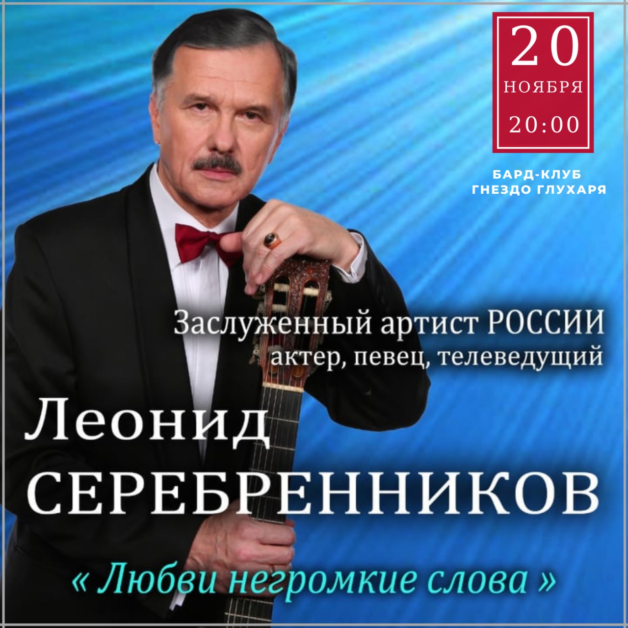 Заслуженный Артист России,актёр,певец,телеведущий-Леонид Фёдорович Серебренников – известный исполнитель песен отечественных и зарубежных композиторов, старинных русских городских романсов, выпускник театрального училища им. Щепкина.