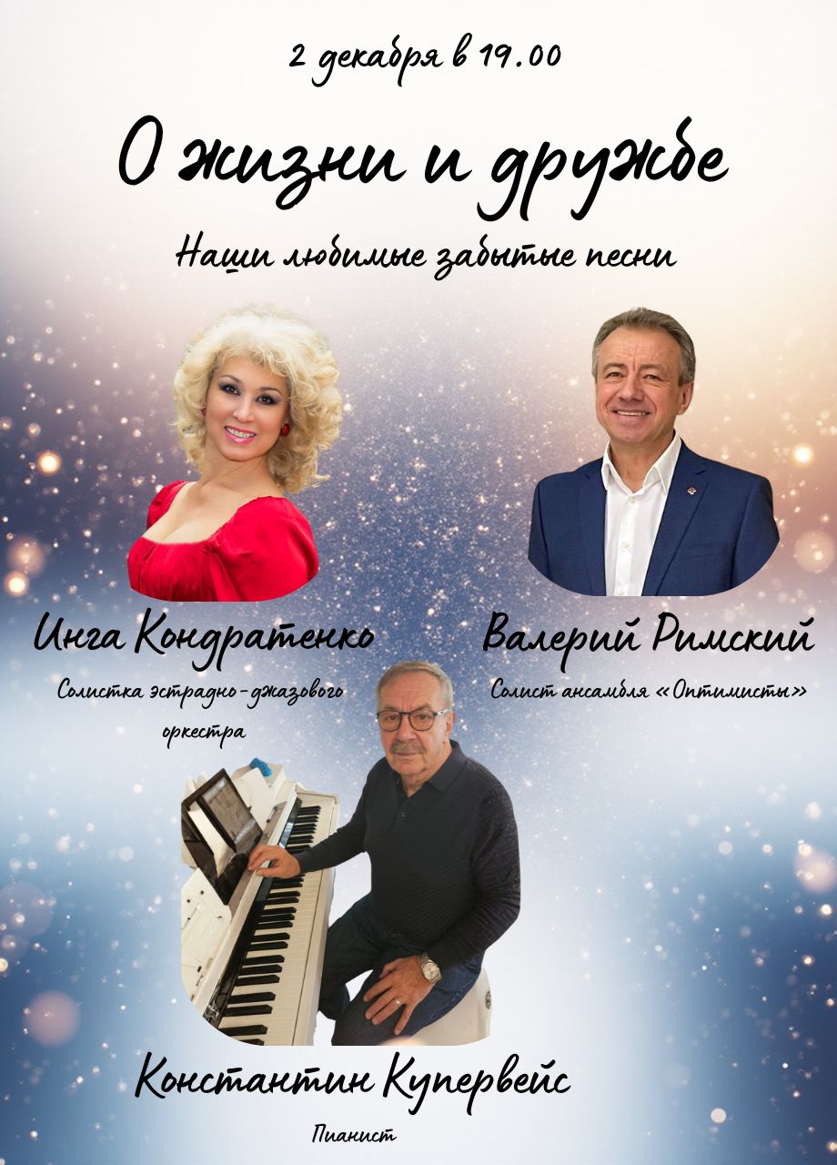 Вниманию публики представляется программа из всеми любимых, душевных и узнаваемых песен – от романсов до шлягеров советской эстрады.